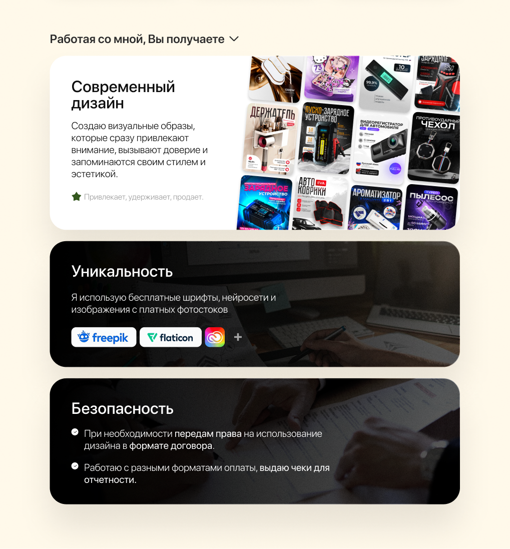 Портфолио, полезные материалы, прайс-лист, детали сотрудничества